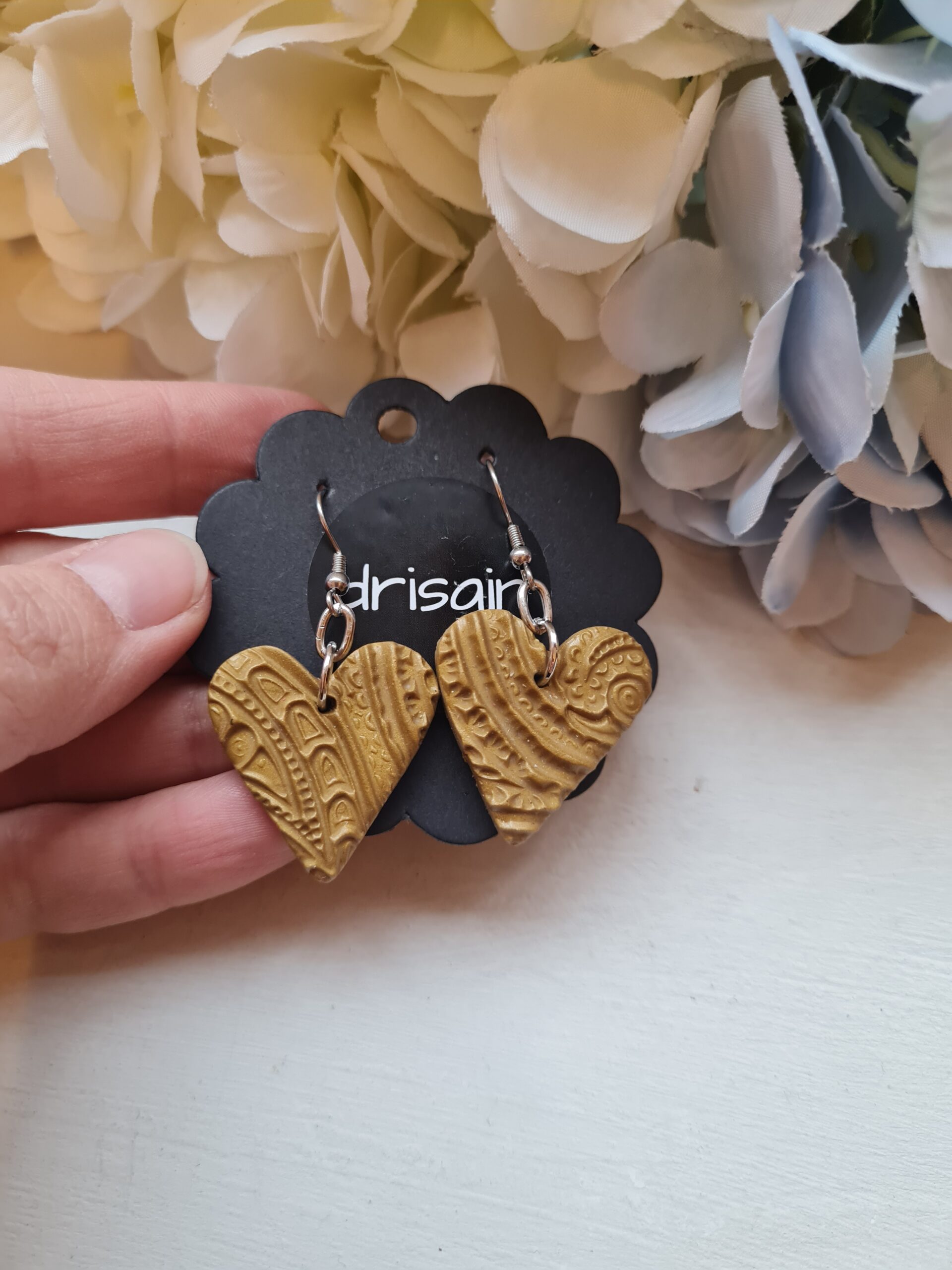 Polümeersavist valminud kerged kõrvarõngad reljeefse pinnaga.