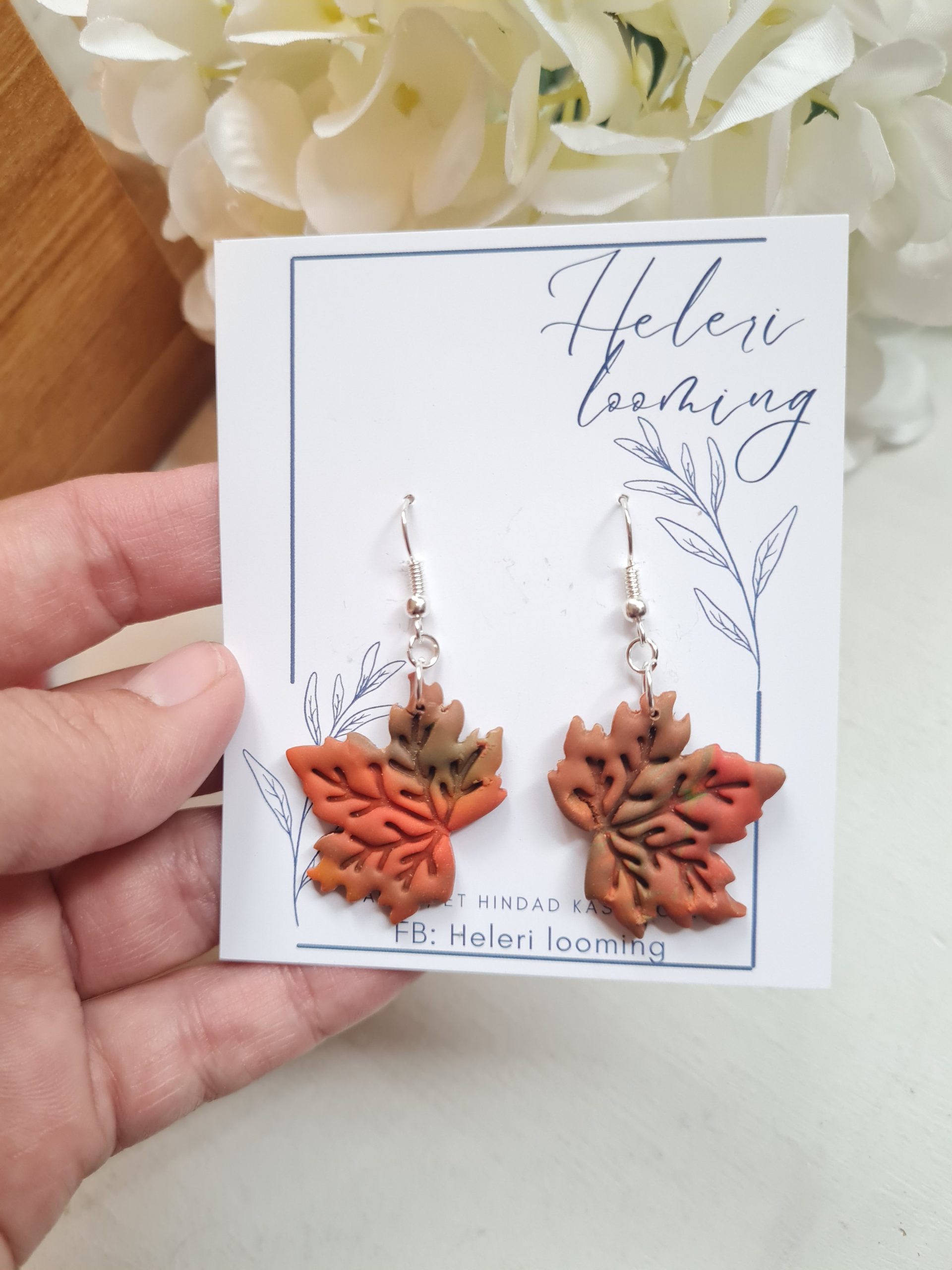Sügisest inspireeritud käsitööna valminud kõrvarõngad.