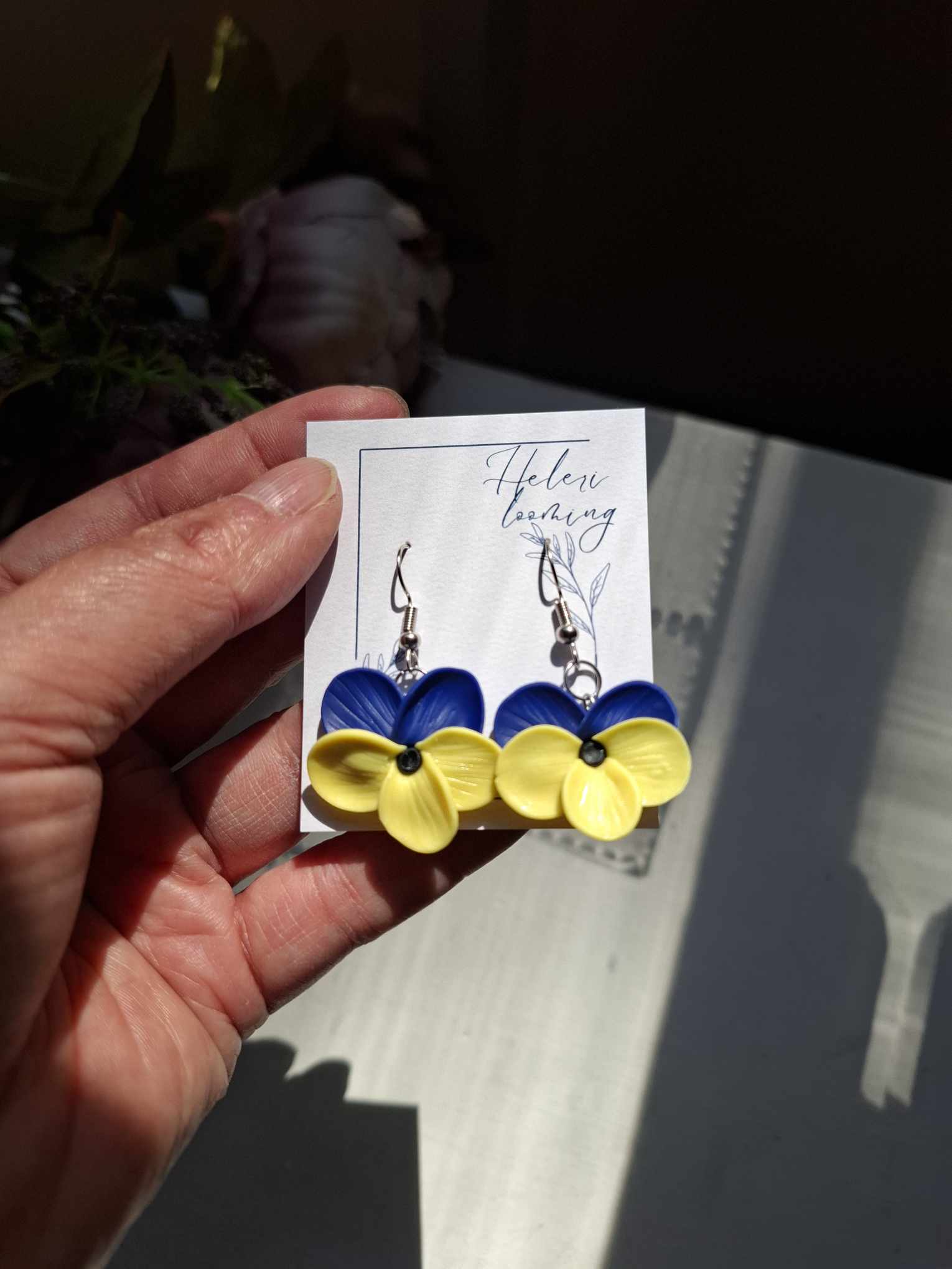 Käsitsi valminud polümeersavist kõrvarõngad.