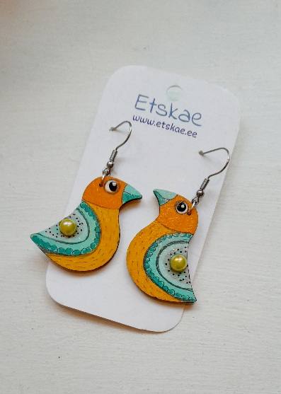 Stiilsed puidust valmistatud ja käsitsi maalitud kõrvarõngad.