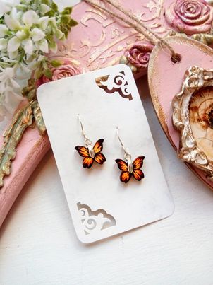 Puidust kõrvarõngad “Pisikesed oranžid liblikad”
