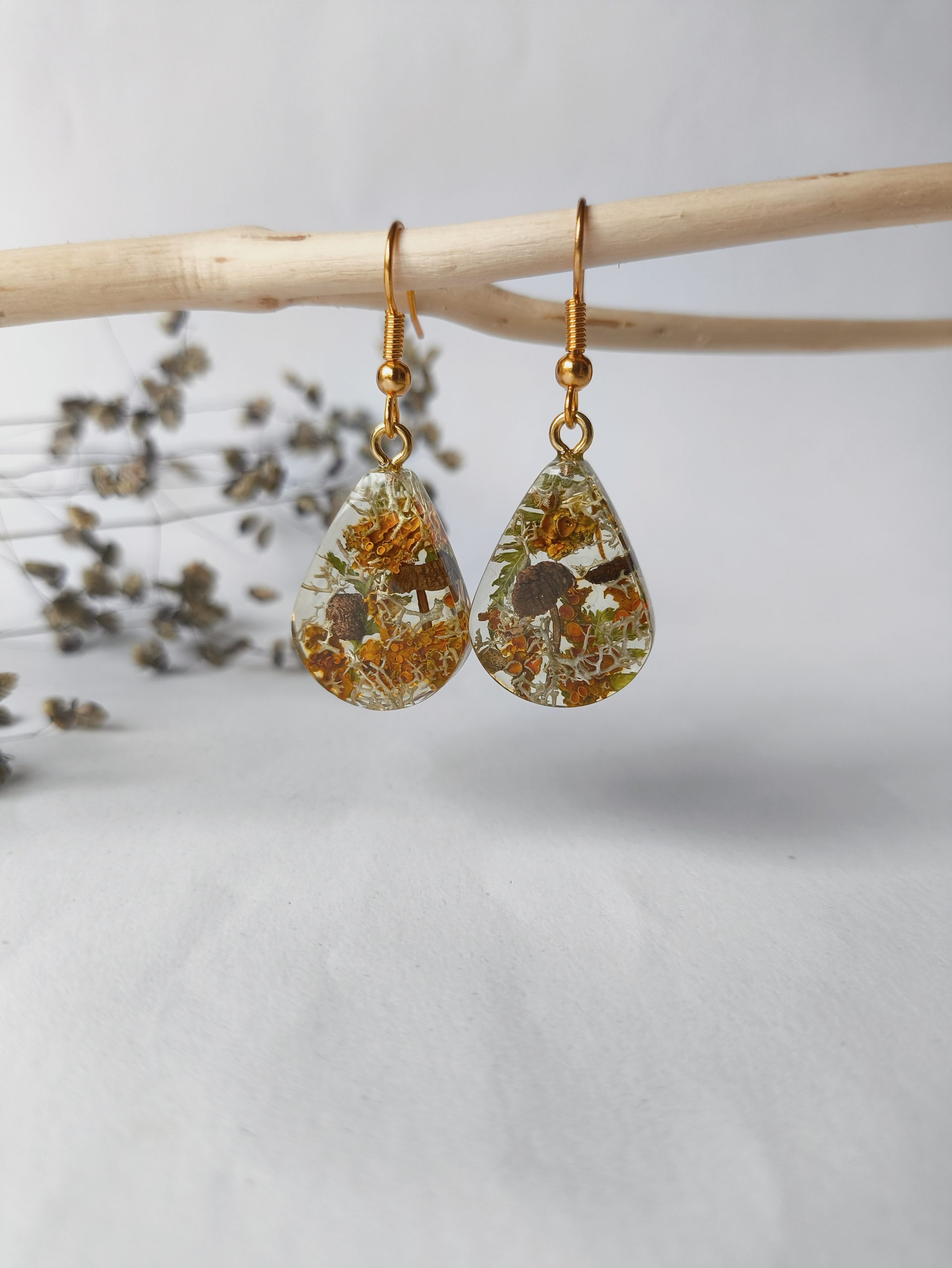 Kaunilt käsitööna valminud kõrvarõngad epoksiidvaigust lisavad naturaalset ilu igale kandjale.