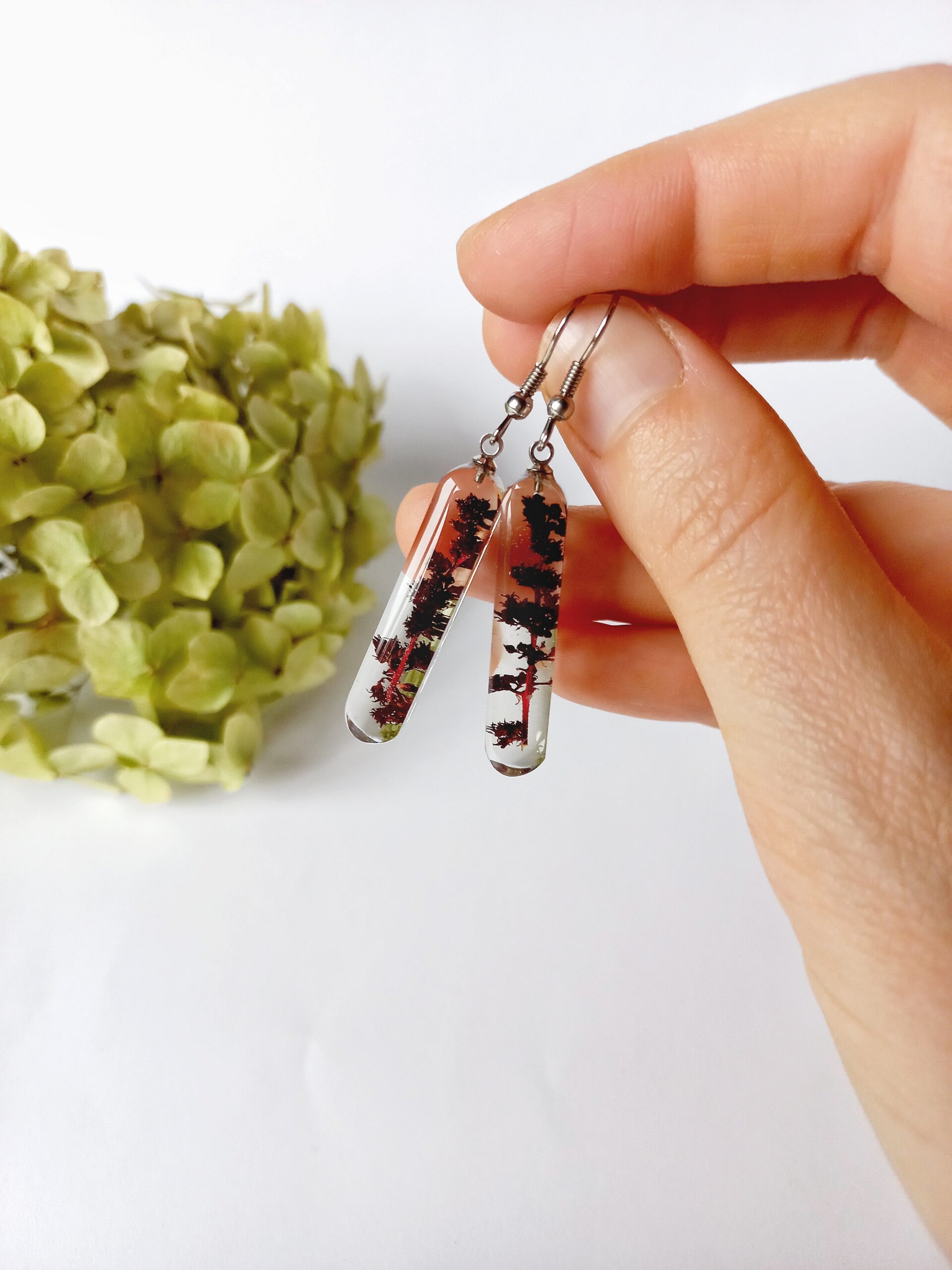 Kaunilt käsitööna valminud kõrvarõngad epoksiidvaigust lisavad naturaalset ilu igale kandjale.