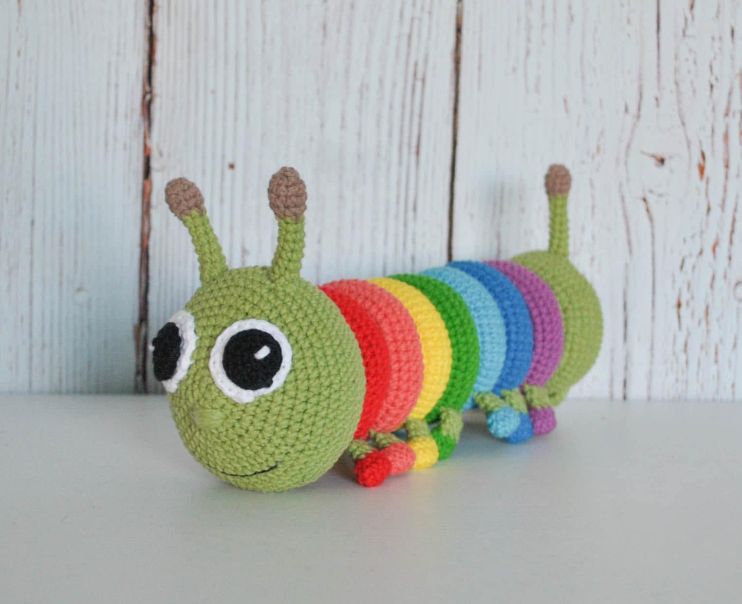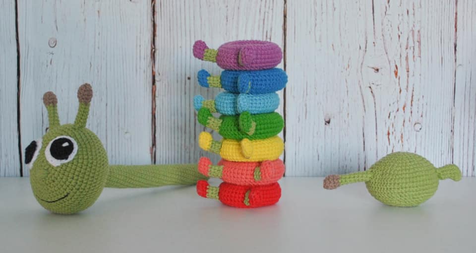 Amigurumi stiilis heegeldatud vahva ladumistorn arendab väikelaste motoorikat.