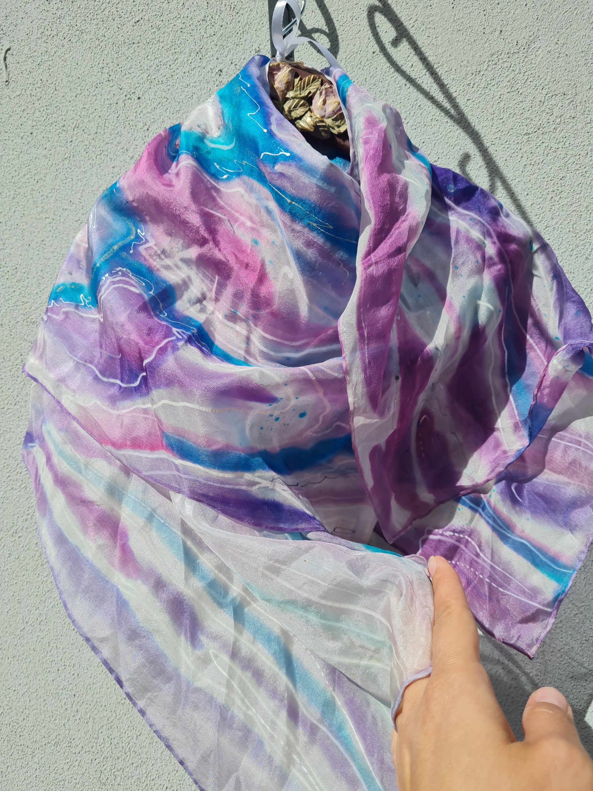 Maalinguga siidisall “Lillad ja sinised toonid”
