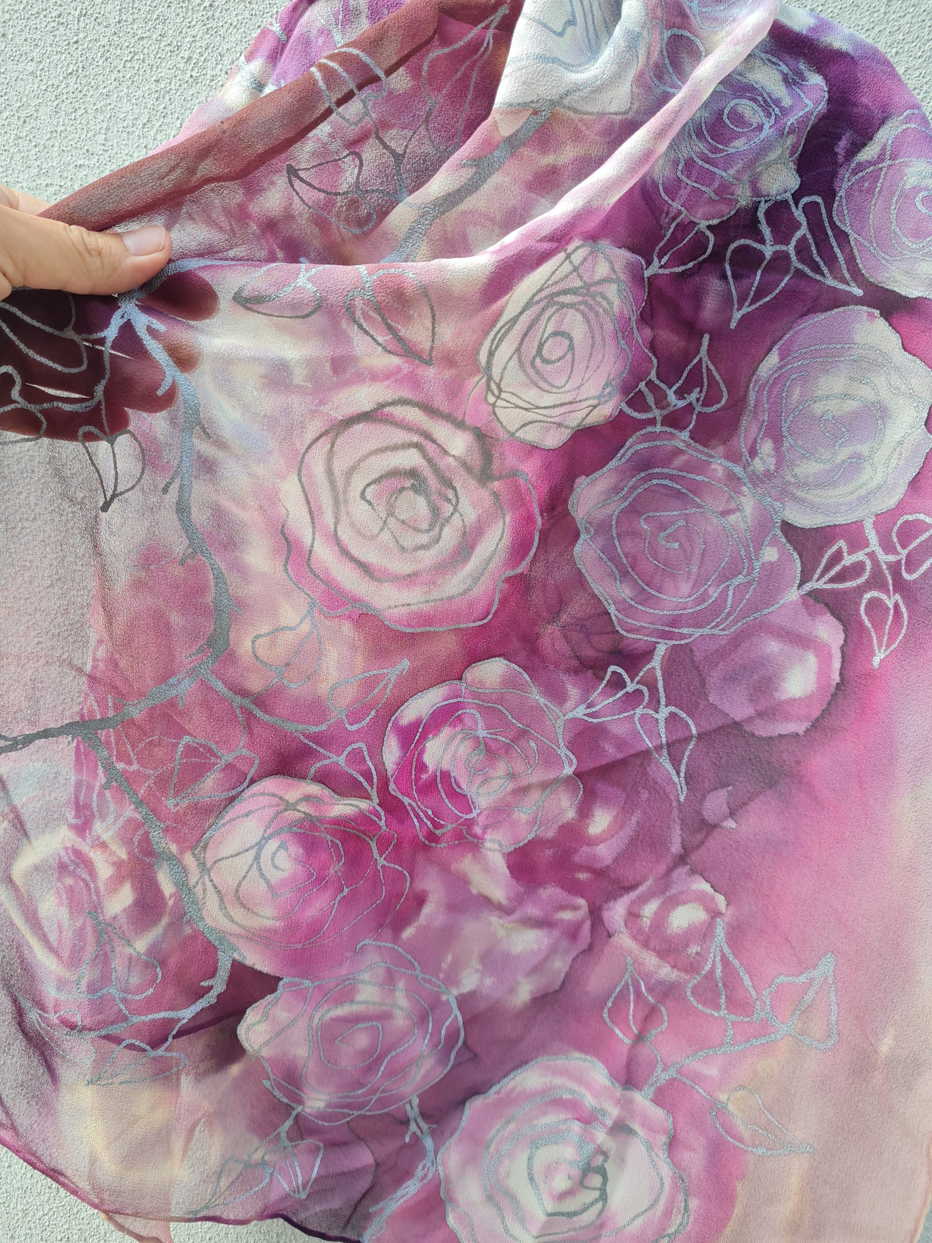 Maalinguga siidisall “Lillad roosid”