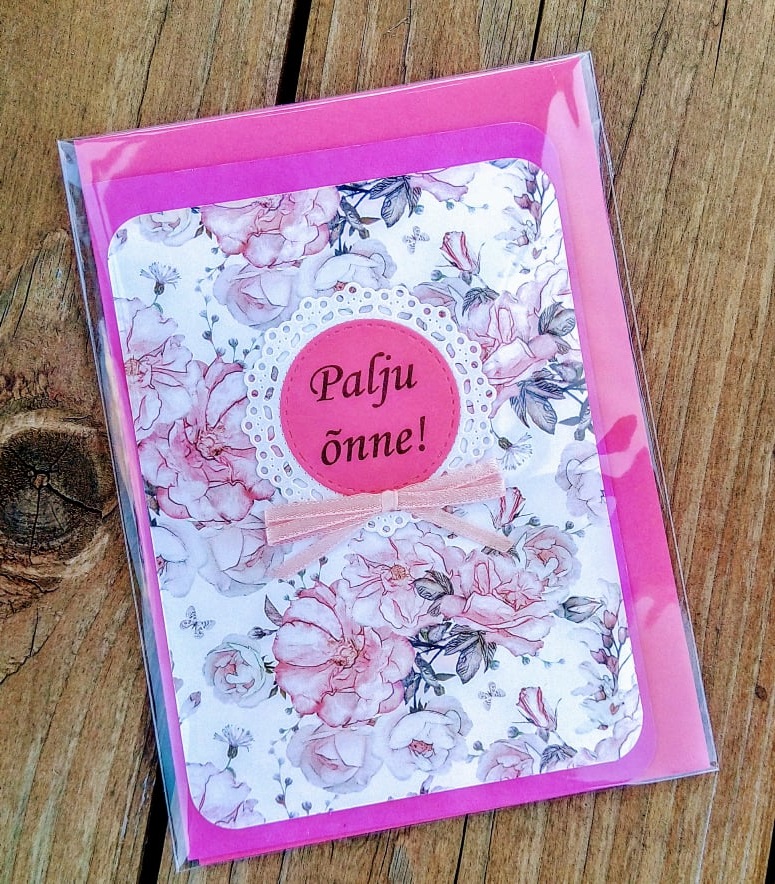 Kaunis, lillakate rooside pildiga kaart tähtpäevaks