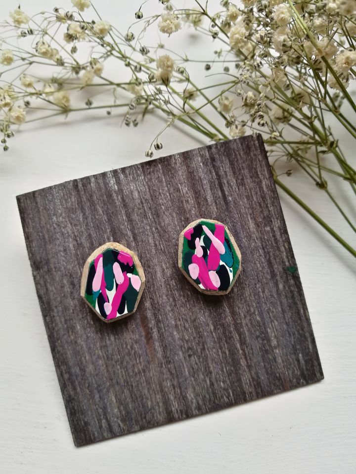 Kaunilt värvilised ehted on valmistatud kvaliteetsest tammepuust ja iga kõrvarõngas on käsitsi maalitud.