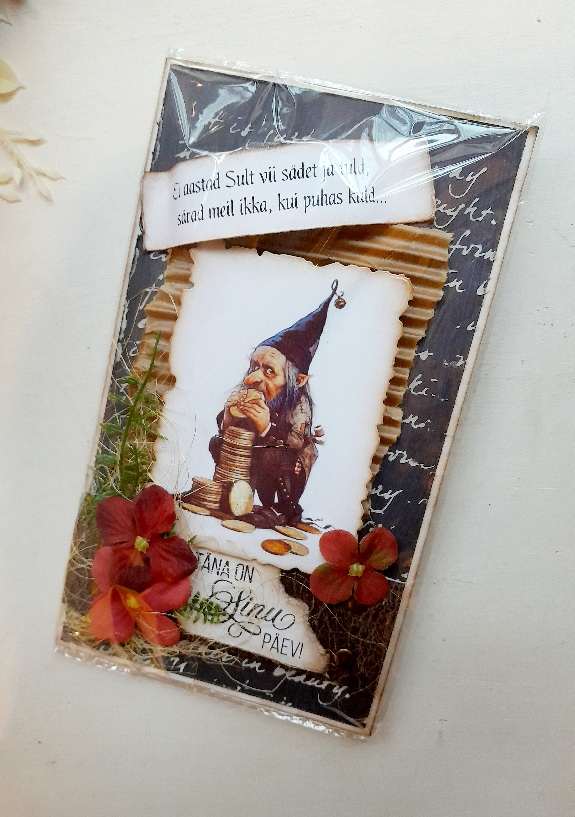 Krutskeid täis õnnitluskaart rahataskuga