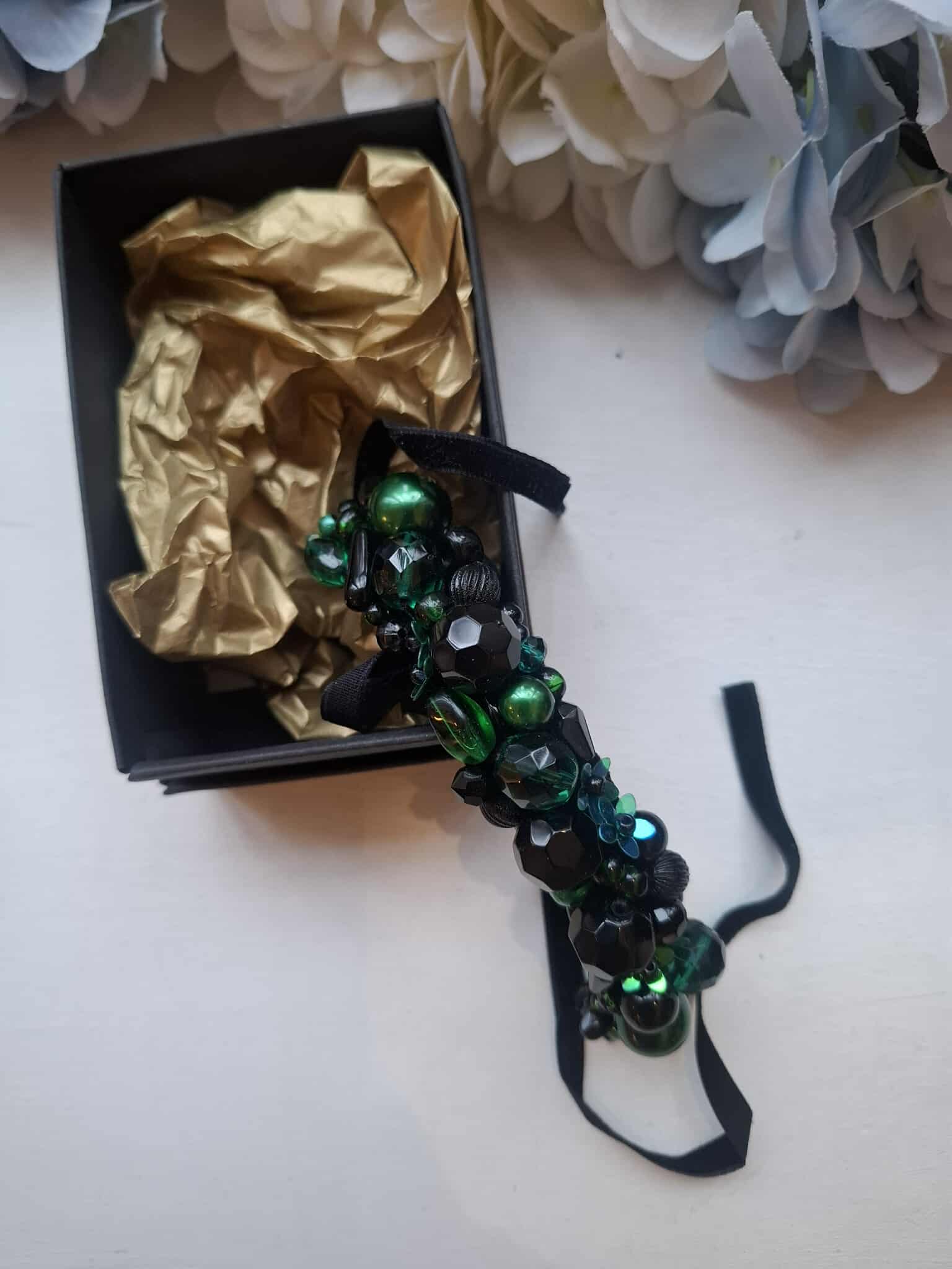 Käsitööna valminud pärltikandiga pidulik ja elegantne käeehe.