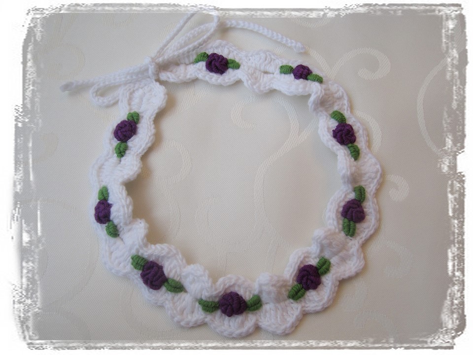 Kaunis heegeldatud roosidega peapael lisab särtsu pisikesele tüdrukutirtsule.