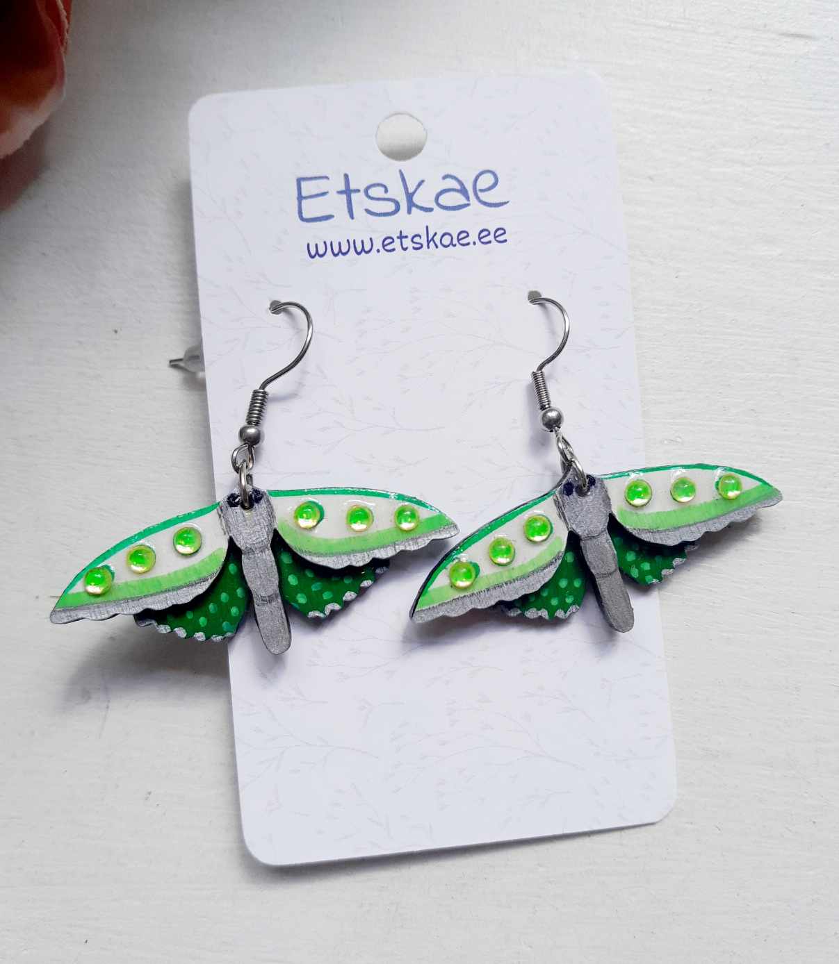 Stiilsed puidust valmistatud ja käsitsi maalitud kõrvarõngad.