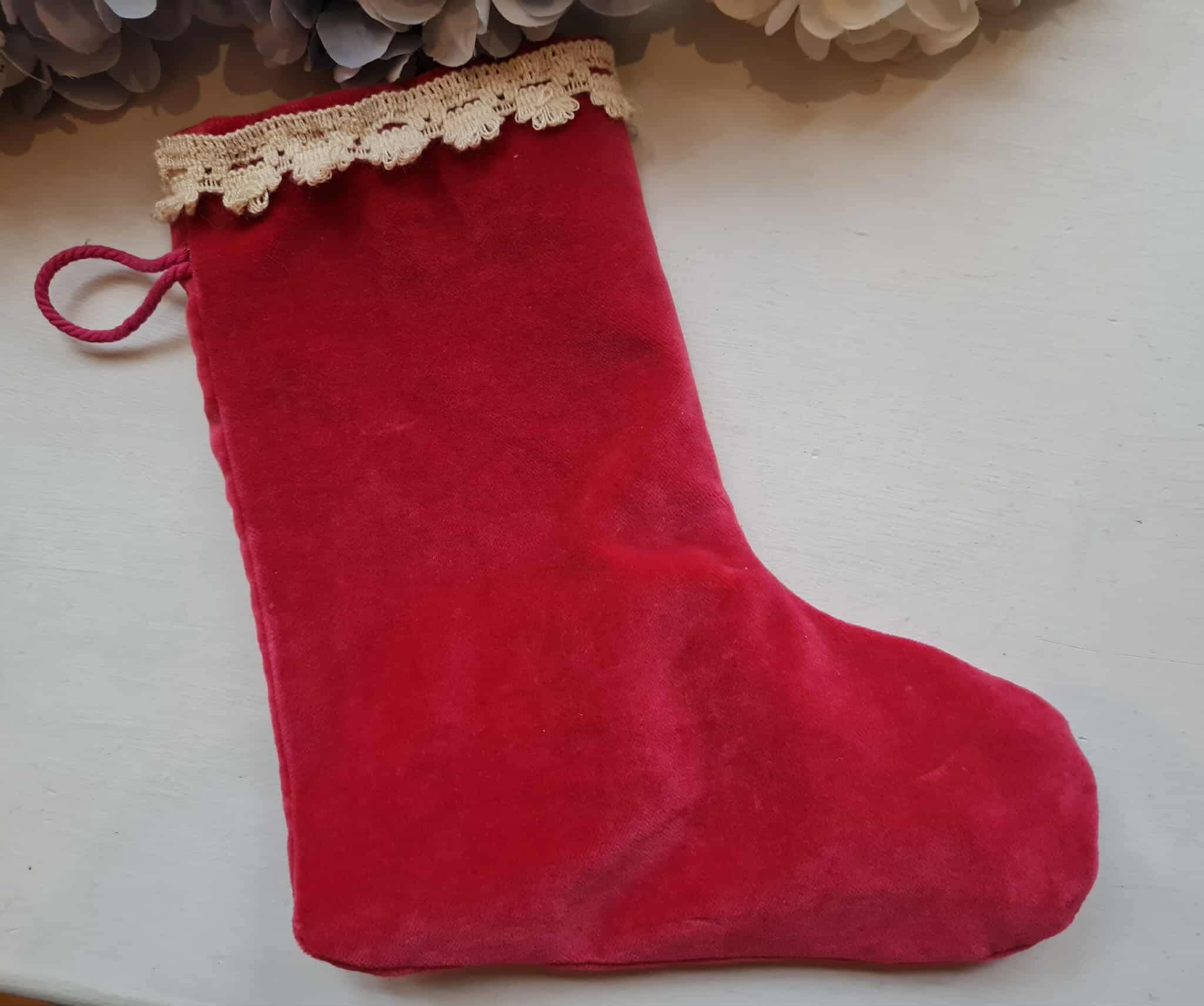 Käsitsi tehtud punane päkapikusokk