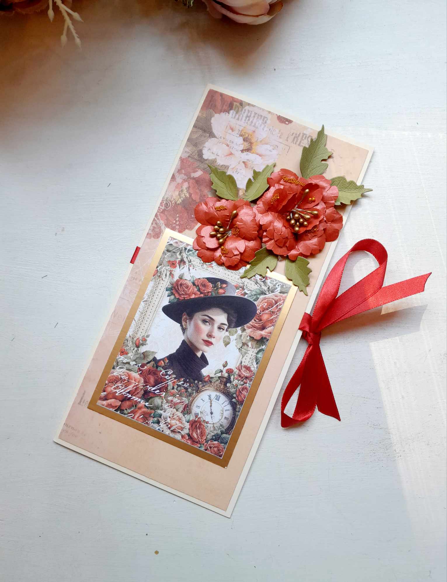 Käsitööna valmistatud kaart õnnesoovide edastamiseks.