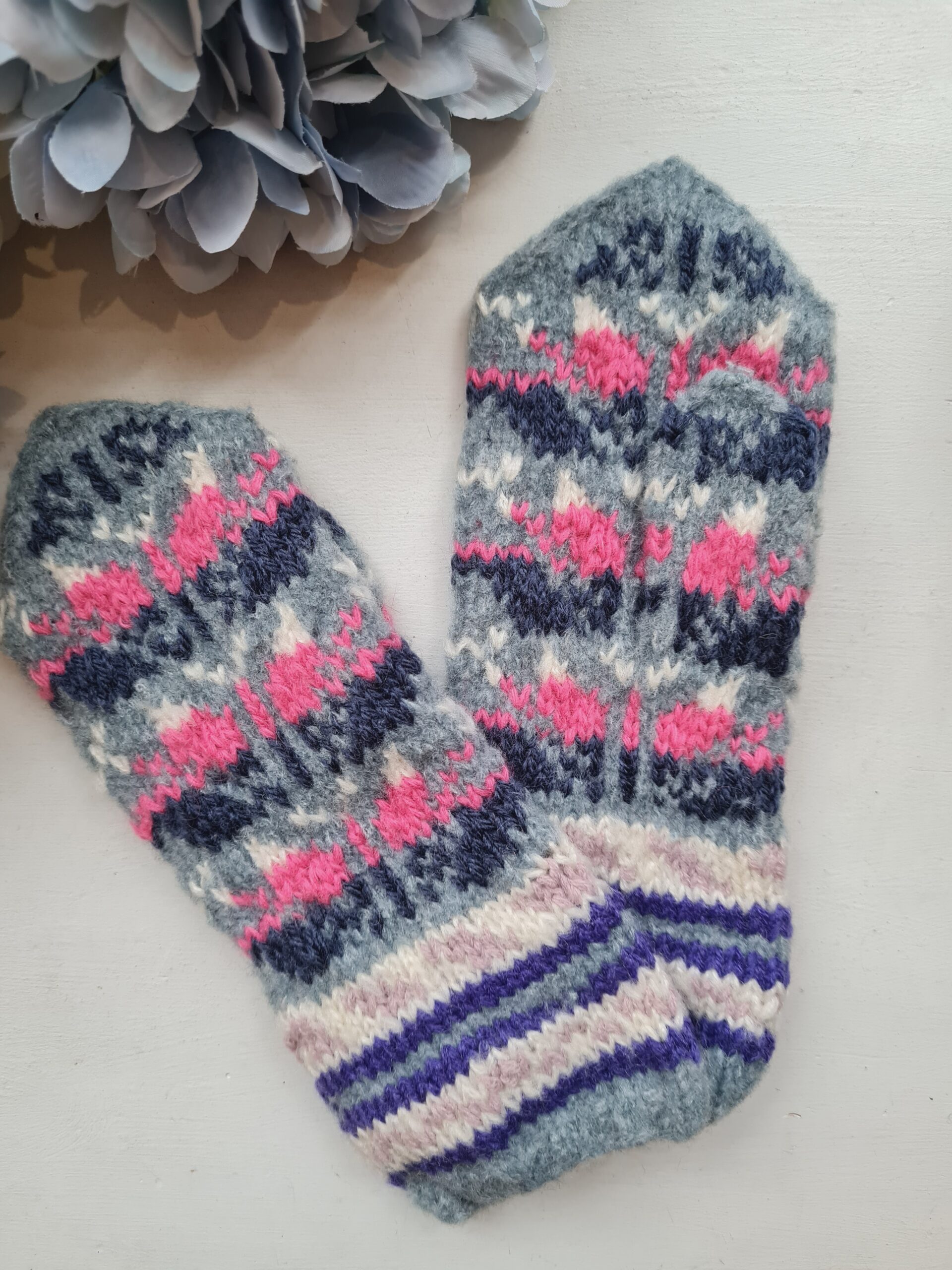 Kauni mustriga käsitsi kootud värvilised kindad