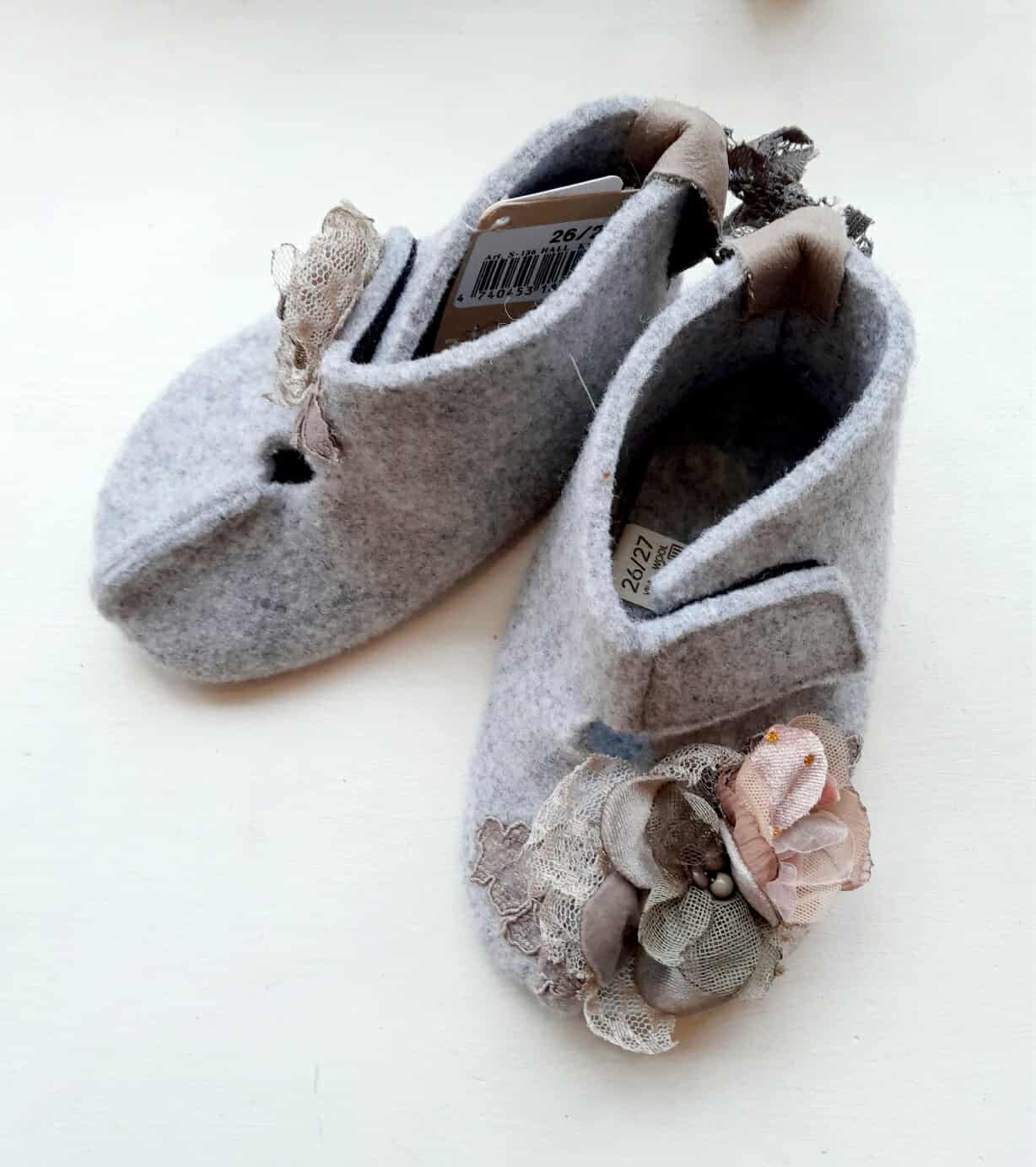 Mõnusad soojad sussid on vildist ja krõpsuga, et oleks hea reguleerida jalas püsimist.