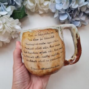 Kaunis, käsitsi meisterdatud keraamiline vaagen, mille peal saad serveerida midagi maitsvat lauale.