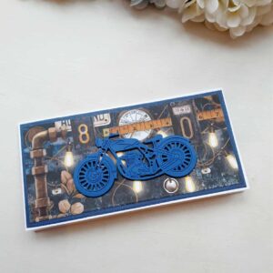 Rahataskuga õnnitluskaart “Mootorratas”, paelaga kinni seotav