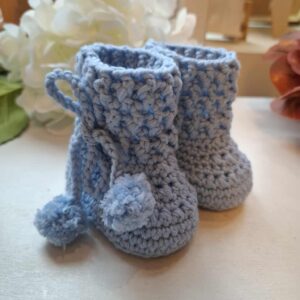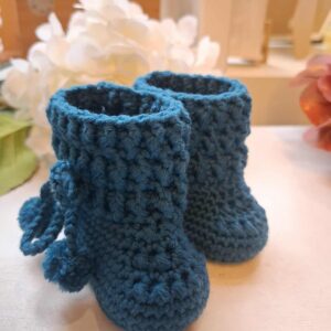 Heegeldatud beebipapud, paelte ja tutikestega – tumesinised
