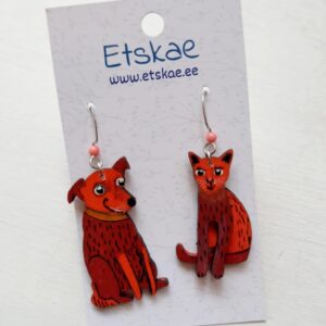 Stiilsed kõrvarõngad “Punane koer ja kass”