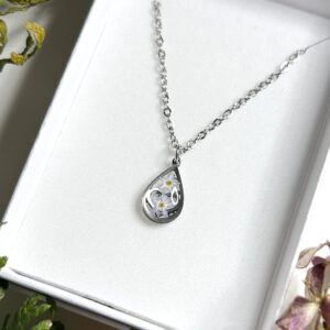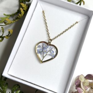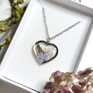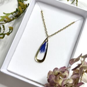 Kaelaehe kuivatatud õitest ja epoksiidvaigust – meelespea, pojeng