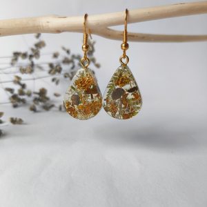 Kõrvarõngad epoksiidvaigust Ja kuivatatud taimedest – seen, korpsamblik, põdrasamblik, sõnajalg